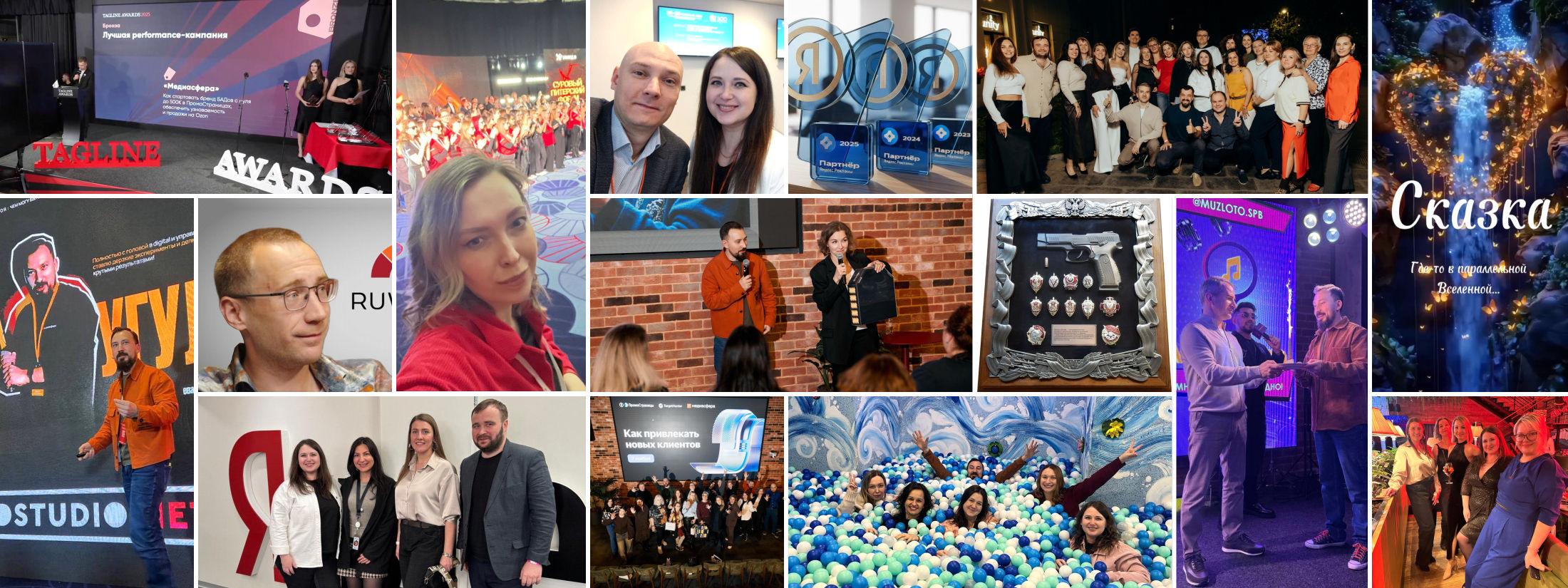 Награды: взяли «Бронзу» Tagline Awards 2025 (Performance marketing), 2 кейса дня на Ruward и 4 кейса в подборке лучших кейсов Яндекс.ПромоСтраниц. Рейтинги: заняли десятки ТОПовых мест в Рейтинге Рунета. Впервые, как контент-агентство и агентство видеопроизводства. Получили полную сертификацию Яндекса.